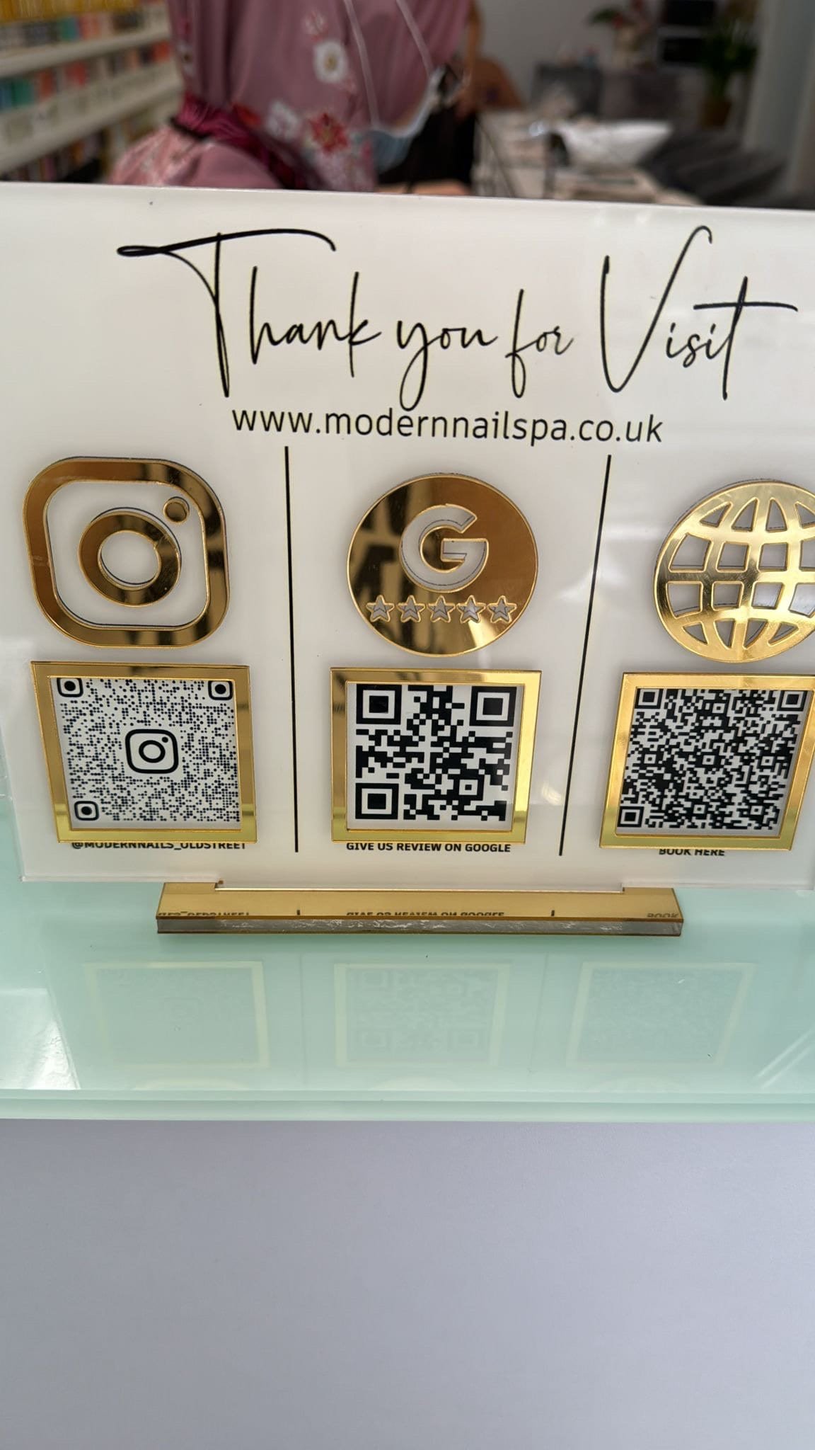 With options for multiple QR codes and a sleek design that matches your décor, this sign is more than just a display — it’s a smart business tool that keeps your brand modern, accessible, and professional.