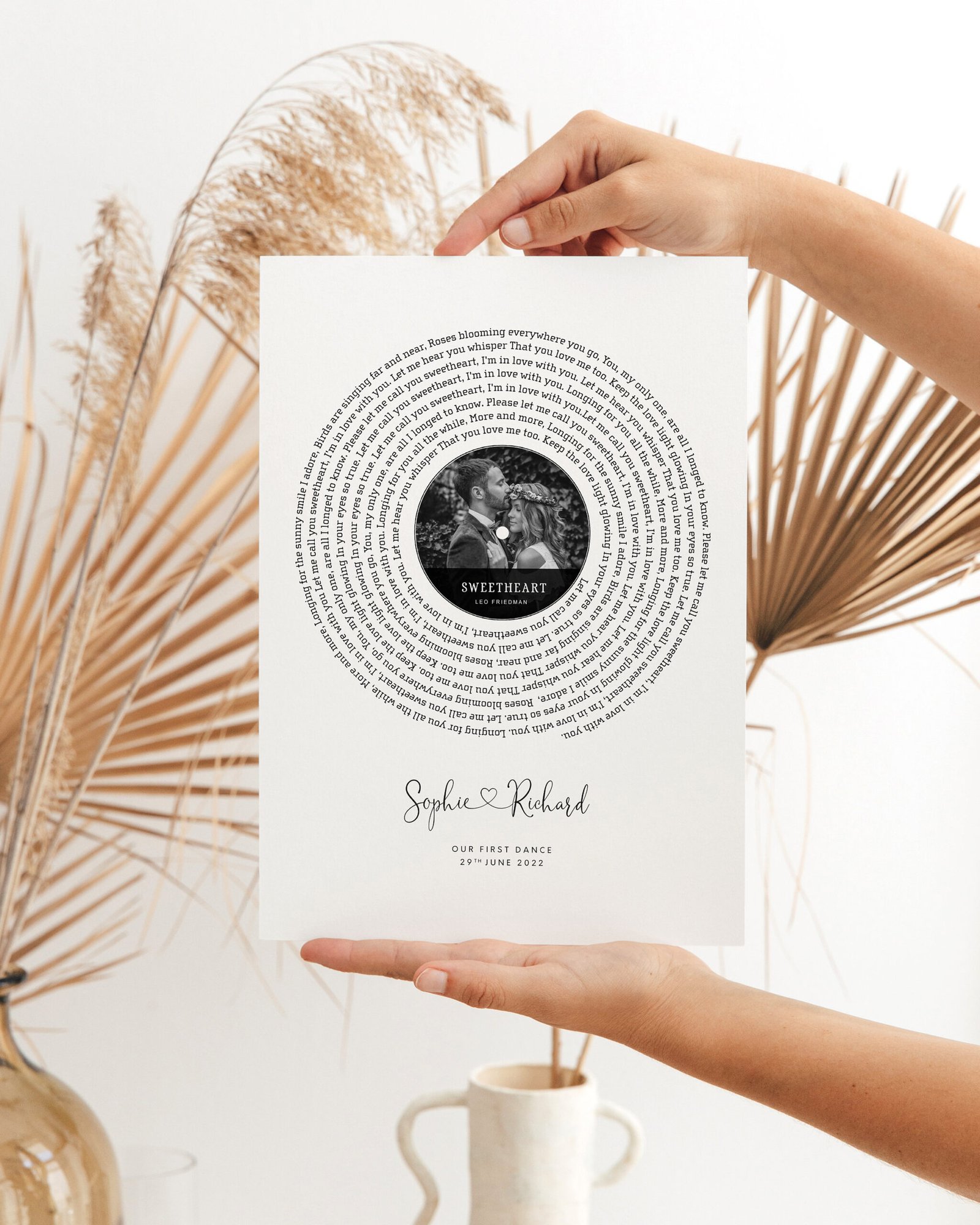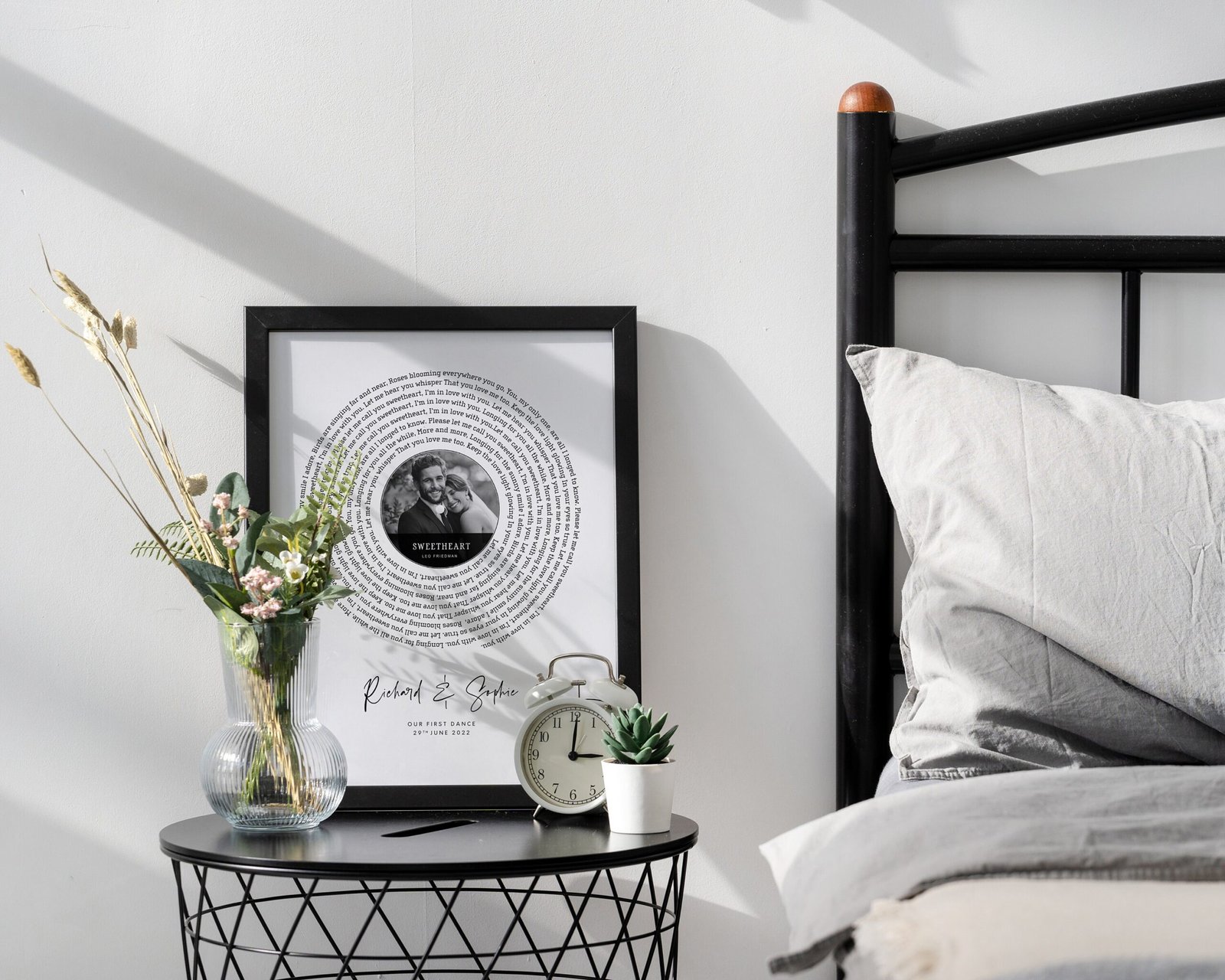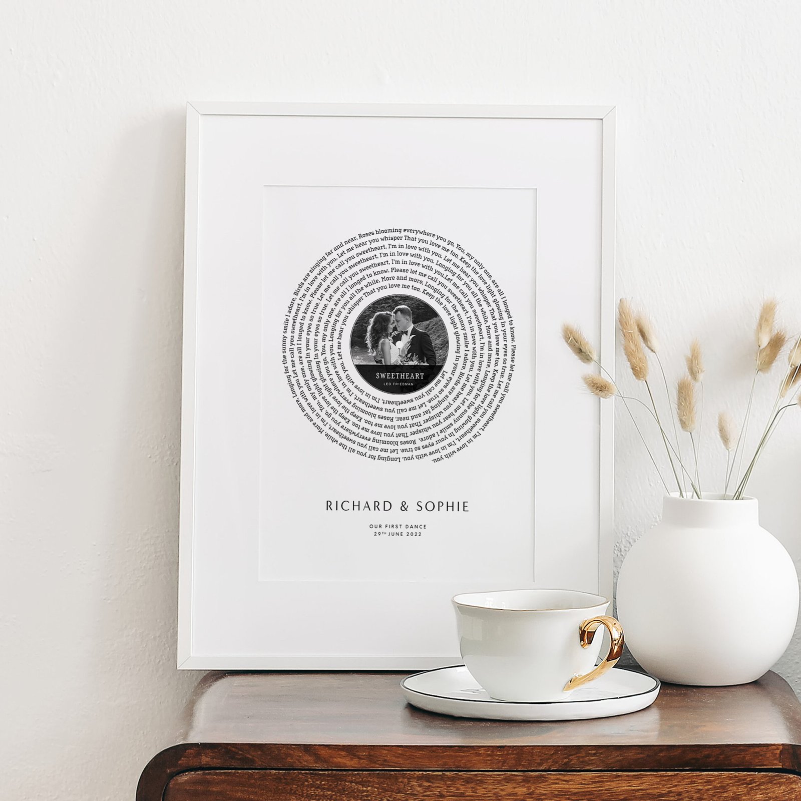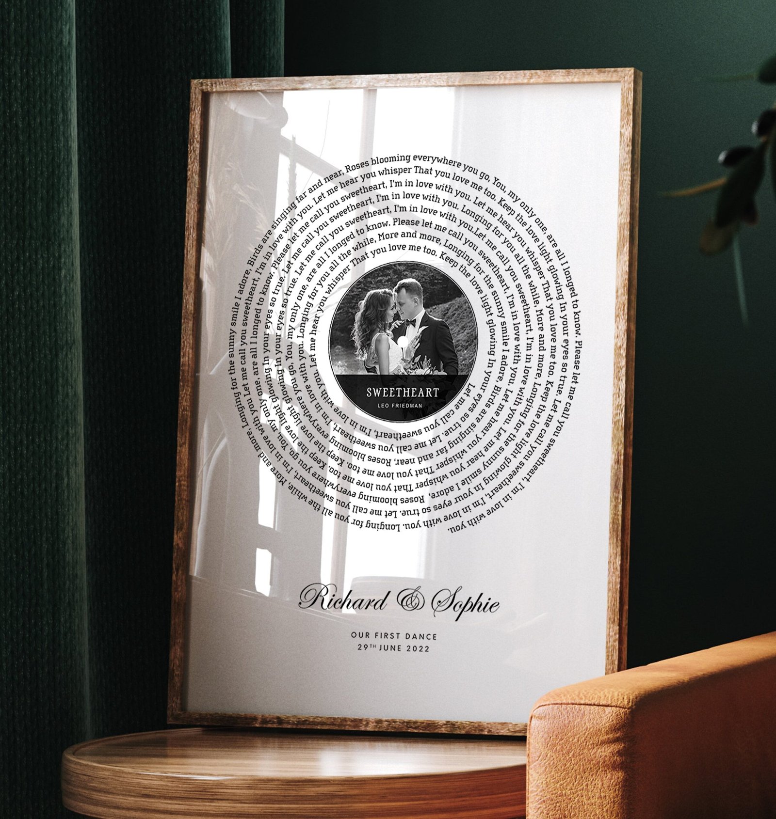 Imagine walking into your home and seeing the lyrics of your first dance framed elegantly in your living room. Or gifting your partner a print of the song that played when you first met. Unlike traditional gifts, this print tells a story—your story.