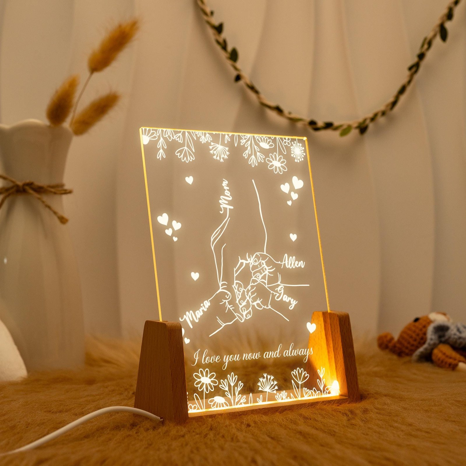 Unlike generic night lights, this one carries your children’s names, making it a deeply personal piece of décor. Each time the lamp glows, it brings with it the warmth of holding hands – that gentle reminder of how love binds families together.