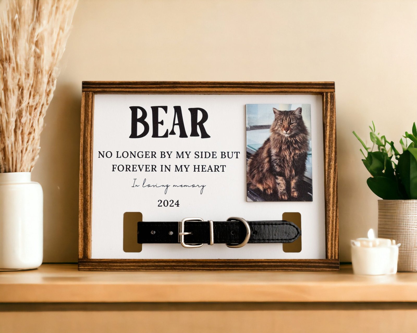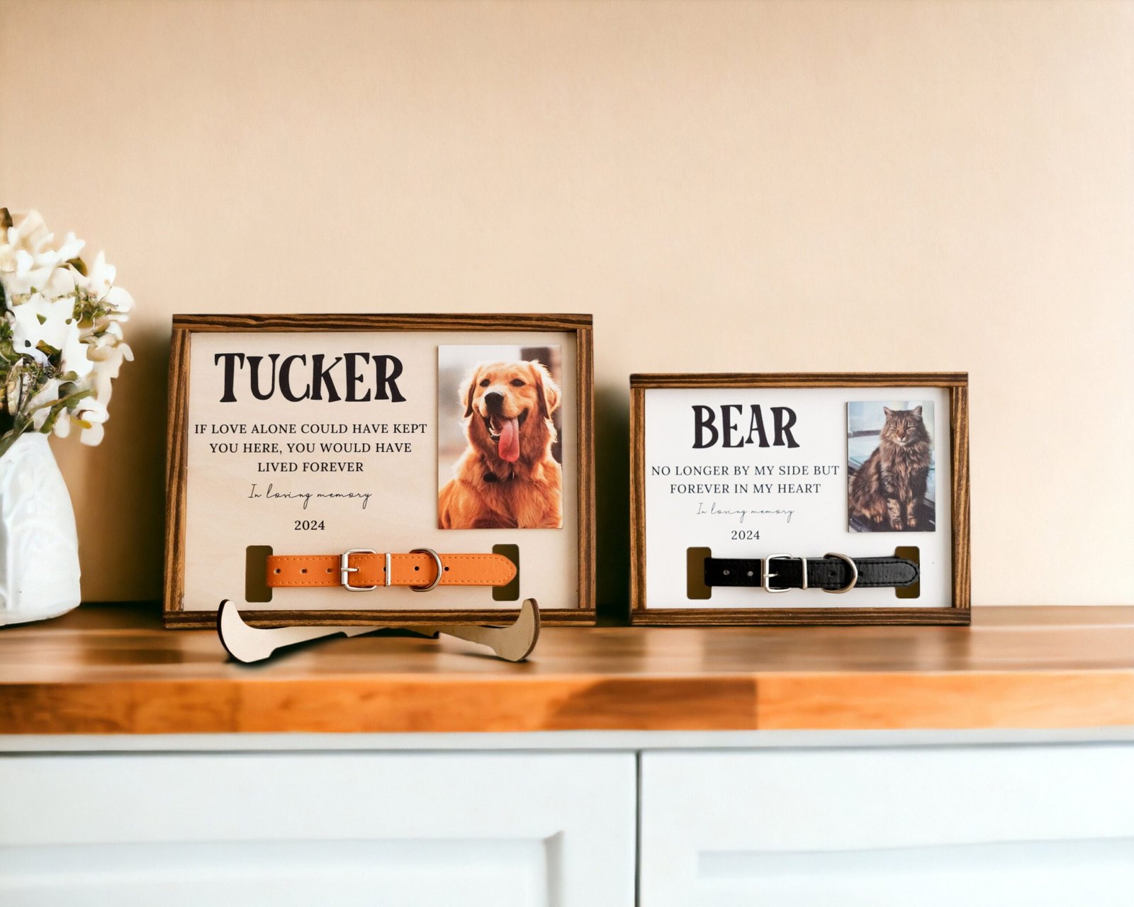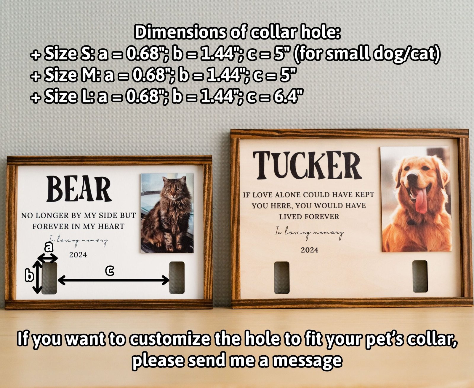 Cherish the memory of your beloved furry friend with our Dog Memorial Sign. This Pet Remembrance Collar Frame serves as a heartfelt tribute, preserving the cherished moments shared. Display your pet’s collar alongside their photo in this Memorial Pet Collar Frame, a touching tribute to their loyalty and love.