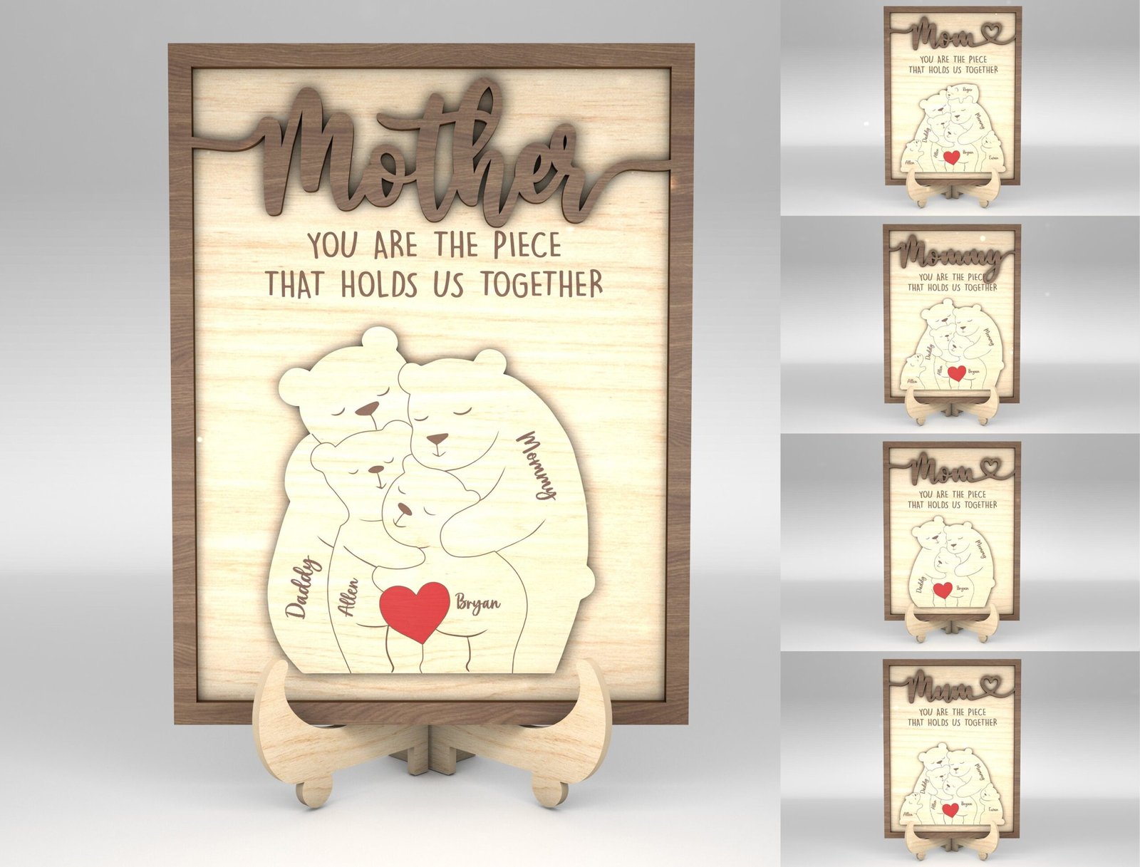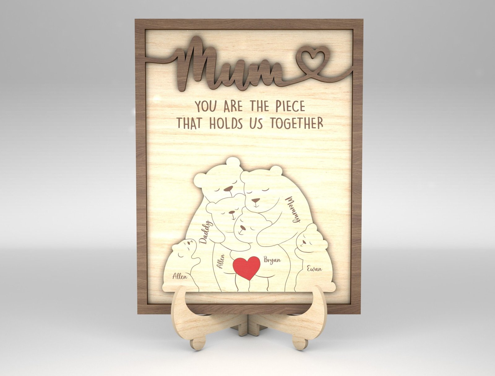 Capture the warmth of your family in a beautiful and customizable digital design with our Personalized Family Puzzle Sign SVG Bear. This downloadable SVG file is ideal for Cricut, Silhouette, and other cutting machines. Whether you’re creating a heartfelt gift, wall dĂ©cor, or a keepsake sign, this puzzle-style bear layout lets you add individual names, making each piece of the bear represent a beloved family member. Perfect for Mother’s Day, Father’s Day, housewarming gifts, or just because—you’ll be turning pixels into precious memories in minutes.