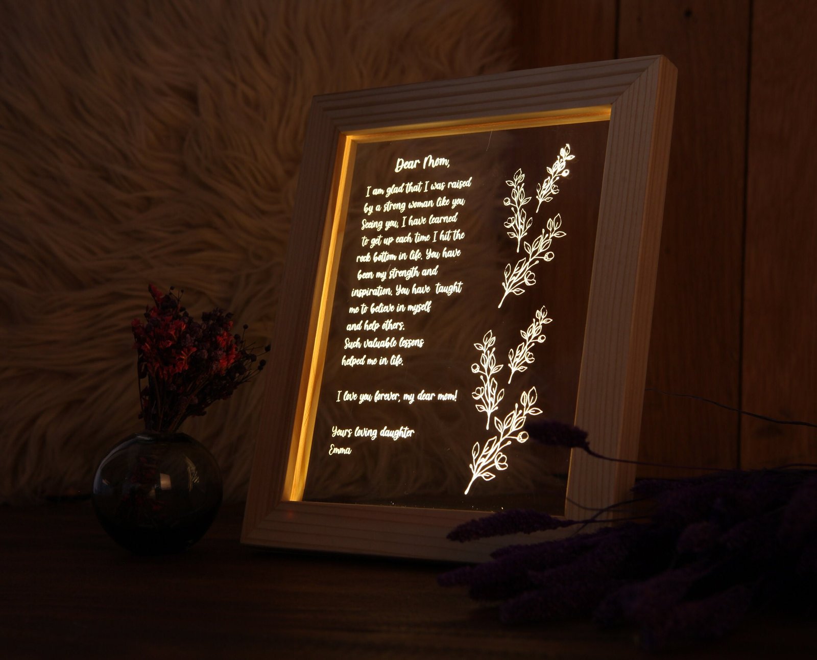 This is a keepsake that will not fade with time. It’s crafted to be admired, cherished, and remembered for years to come. Whether you’re looking to express gratitude, share heartfelt memories, or give the ultimate Mother’s Day or Father’s Day surprise, this lamp does it all—with elegance, meaning, and light.