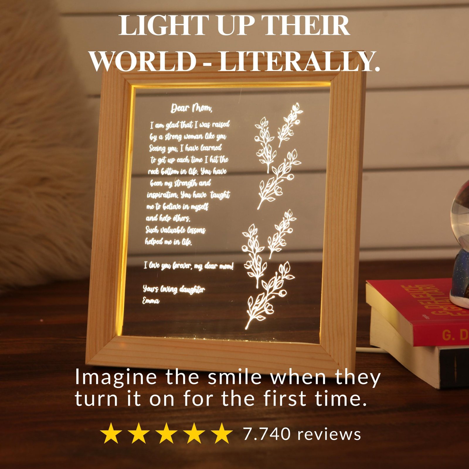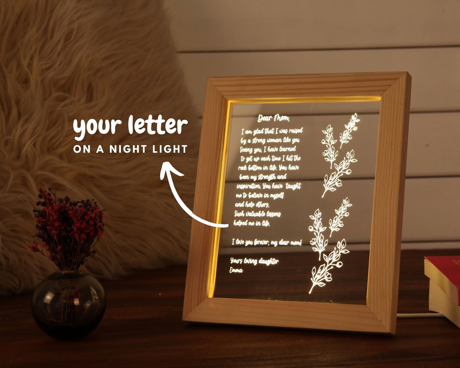 🌟 Mother’s Day Special Letter Night Light: More Than Just a Gift šŸŒ™Ā This Mother’s Day, instead of giving your mother an ordinary gift, present her with the most special gift from your heart. Carry your love to eternity with theĀ Mother’s Day Special Letter Night Light. If you’re looking for a gift filled with love in every letter, and remembered for a lifetime, look no further! Our personalized letter night light for mothers is a keepsake where emotions and memories will be preserved for eternity. This unique lamp carries a letter filled with your words. Every line, every sentence, is a reflection of the love you have for your mother. This letter lamp serves as an emotional bridge, allowing you to express your feelings. In any case, this lamp will shed light on your mother’s heart and remind her how precious she is.