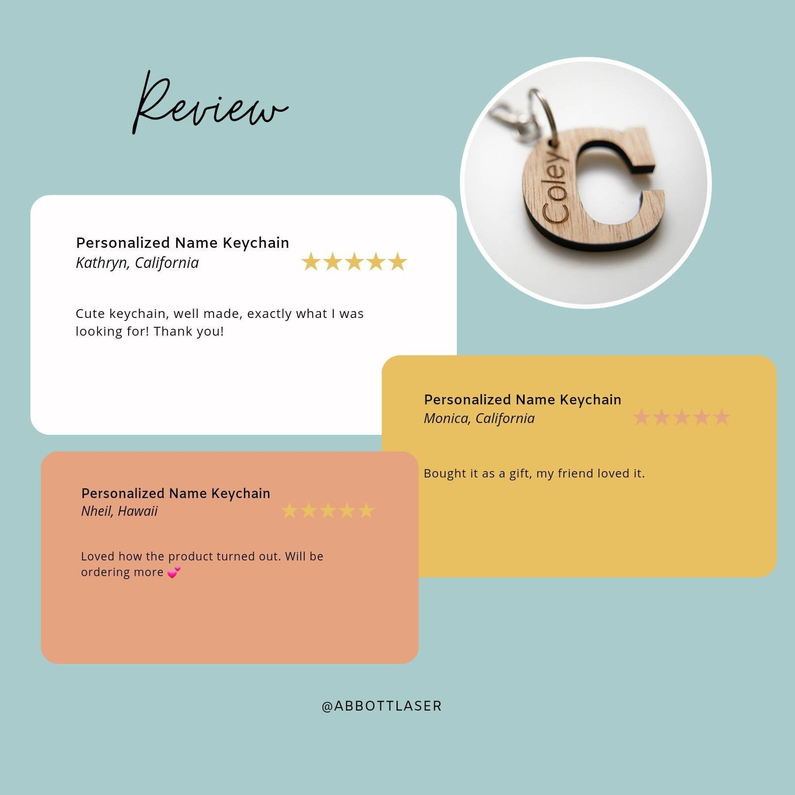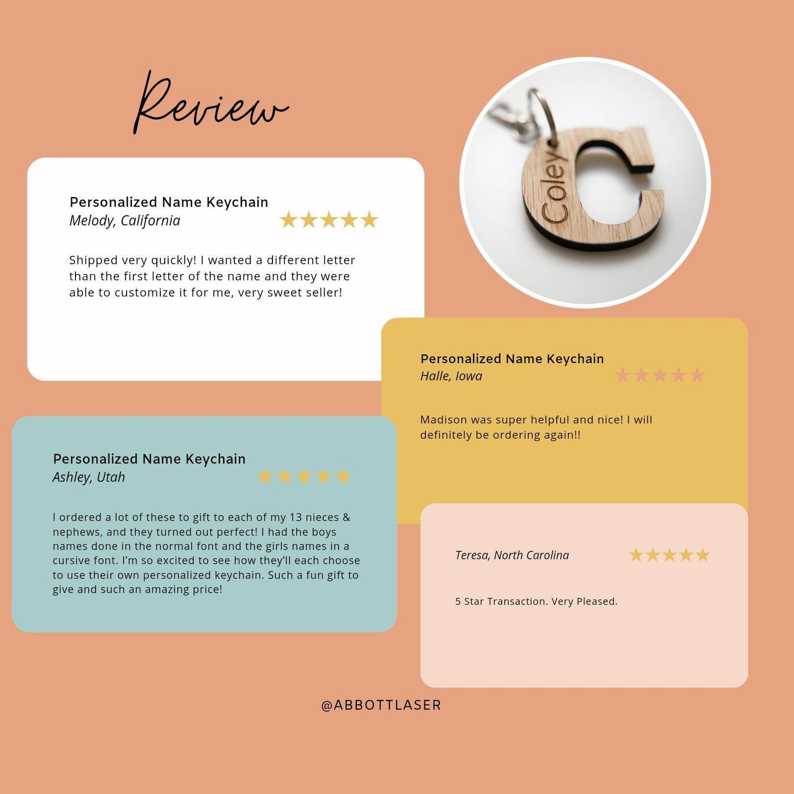 Each piece is lovingly made by our family at Abbott Laser, where your satisfaction and creativity are always our top priority.