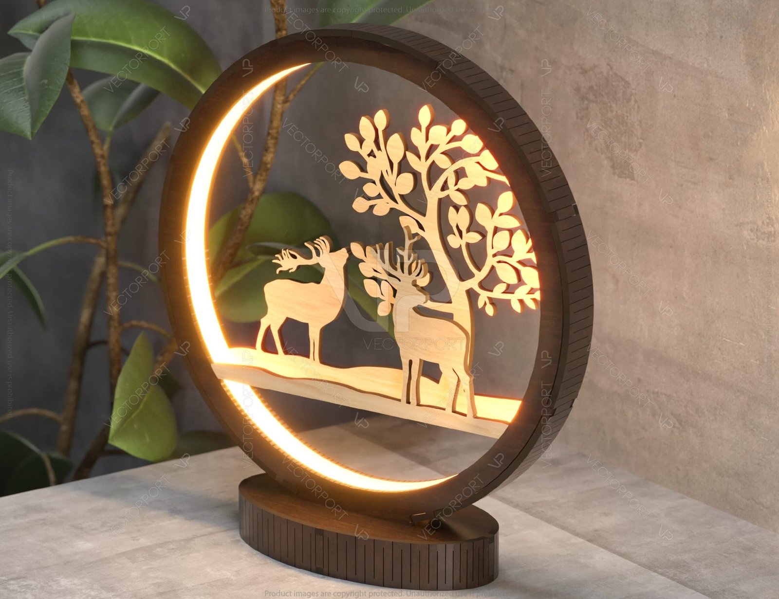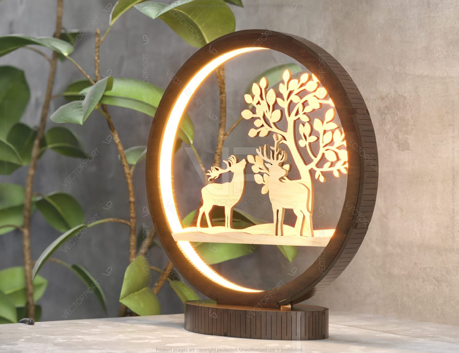 Transform your bedroom with the Snowy Scene Deer 3D LED Night Lamp, a modern and stylish addition to your bedside table. This digital download allows you to craft your own laser-cut lamp featuring a serene snowy scene with deer, bringing a touch of nature-inspired charm to your space.